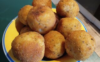 Une fois cuit, bien l’égoutter à la passoire et étalez le pour qu’il refroidisse au plus vite. Puis mettre au frais, il faut vraiment que le riz soit totalement refroidi pour former ensuite les arancini. Si vous pouvez je vous conseille de cuire le riz la veille.